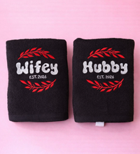 This set includes two towels, each sized at 20 x 40 inches, ideal for hand, face, or gym use. Available in any color of your choice, the towels feature elegant custom embroidery and can be personalized with names or initials, creating a meaningful and stylish pair for couples.