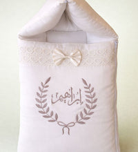 Wrap your newborn in comfort and elegance with the Arabic Name Nest, thoughtfully designed for both softness and style. Made from high-quality Cotton Satin, this carry nest is gentle on delicate skin while providing a cozy and secure environment for your baby’s rest and cuddle time.