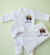 The royal crown theme adds a graceful, luxurious touch, making this set perfect for newborn essentials, gifting, or special moments. With complete customization options, you can personalize colors, designs, and add embroidered names to create a truly meaningful and memorable keepsake for your little one.