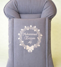 Sized at 27 x 15 inches, it offers a secure and comfortable space for newborns to rest, sleep, or be carried with ease. The minimal yet elegant design can be fully personalized with any color, custom embroidery, and your baby’s name, making it a beautiful keepsake or a thoughtful gift for new parents.