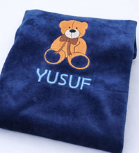 Crafted in a calming blue color, it features a charming bear embroidery design that adds a sweet and playful touch. The blanket can be customized with your baby’s name, making it a meaningful keepsake and a perfect gift for newborns, baby showers, or special occasions.