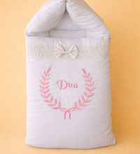 Create a timeless and elegant resting space for your newborn with our Signature Wreath Nest, designed to blend comfort with refined personalization. Crafted from high-quality Cotton Satin, this carry nest offers a soft, smooth touch that’s gentle on delicate baby skin.