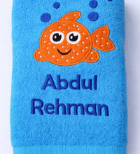 Crafted in a refreshing blue color, it features a lively fish design inspired by the sea. The towel can be customized with your childβs name, adding a personal touch that makes it ideal for school, swimming classes, or thoughtful gifting.