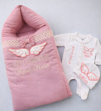 Welcome your little angel with grace and comfort through the Princess Angel Set, a beautifully coordinated 3-piece outfit designed for your baby girl’s precious early months. This set includes a luxuriously Carry Nest carry nest, a cozy blended fabric romper, and a matching cap, ensuring warmth, comfort, and style all in one.